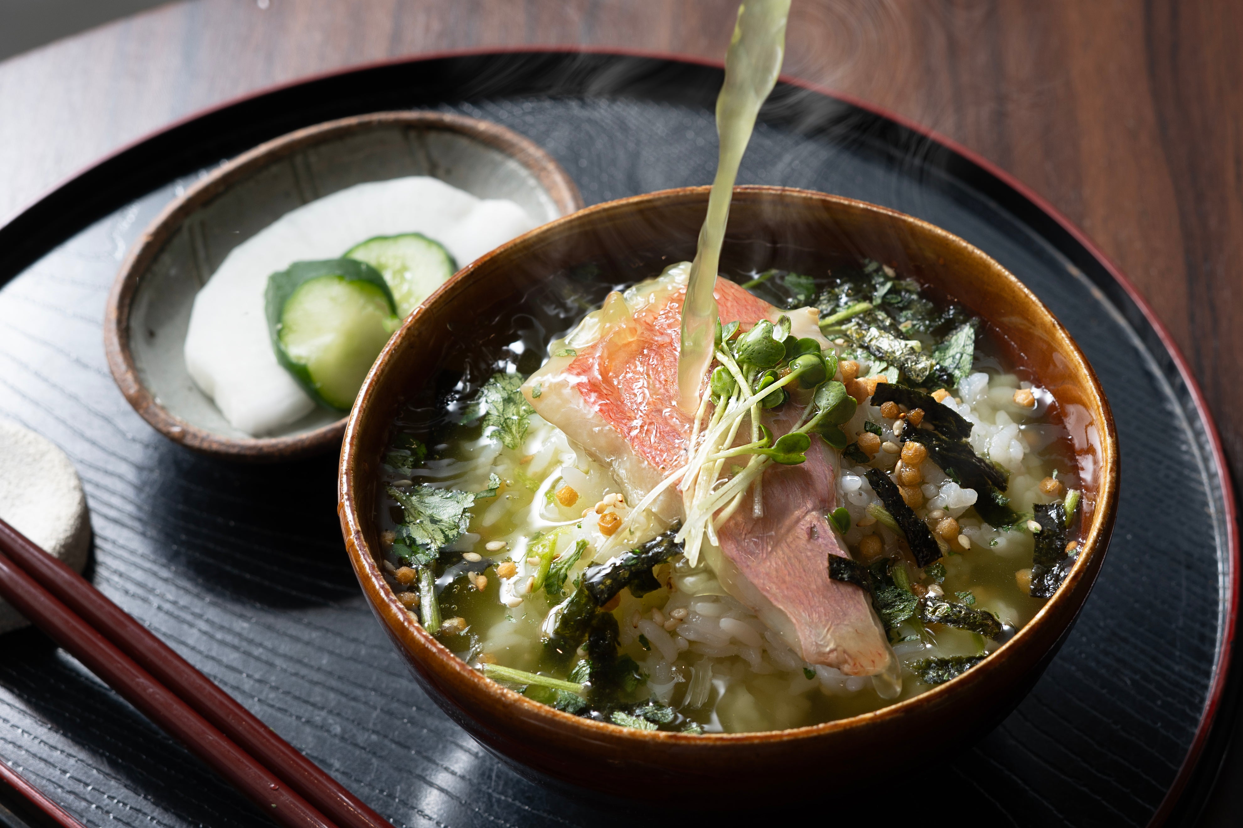 京都・宇治産の玉露粉末を贅沢に使用し、九州産本醸造醤油と宗田鰹節の天然だしで仕上げた、極上のお茶漬けです。