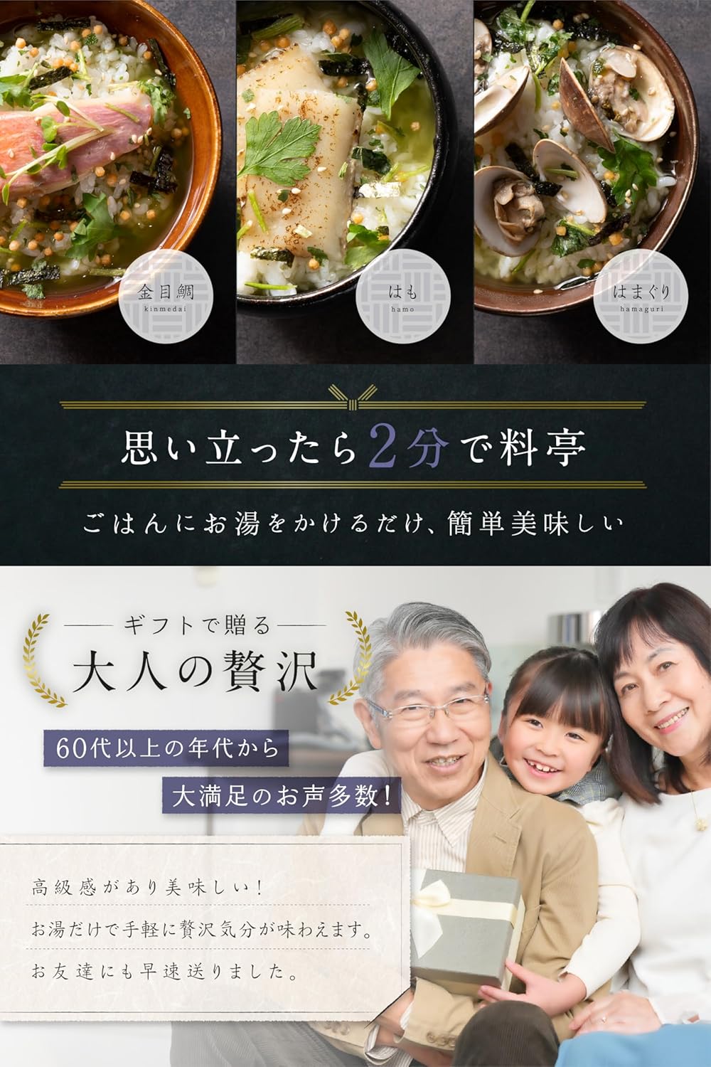 贈り物にふさわしい「高級海鮮お茶漬けギフト」です。