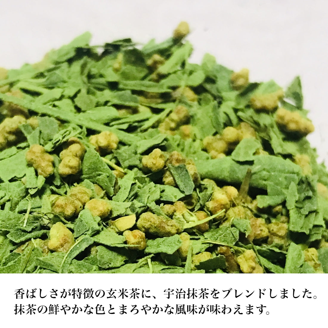 Blended with Uji matcha, this brown rice tea has a vibrant green color and a fragrant flavor.