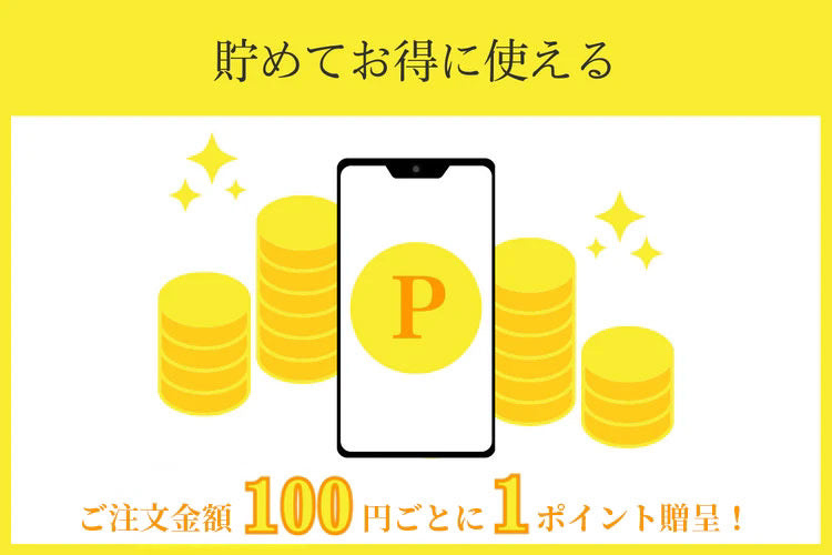 ポイントの付与は、ご注文金額100円ごとに1ポイント付与されます。